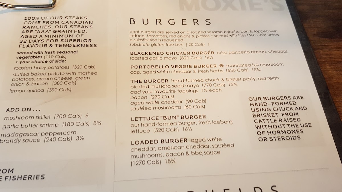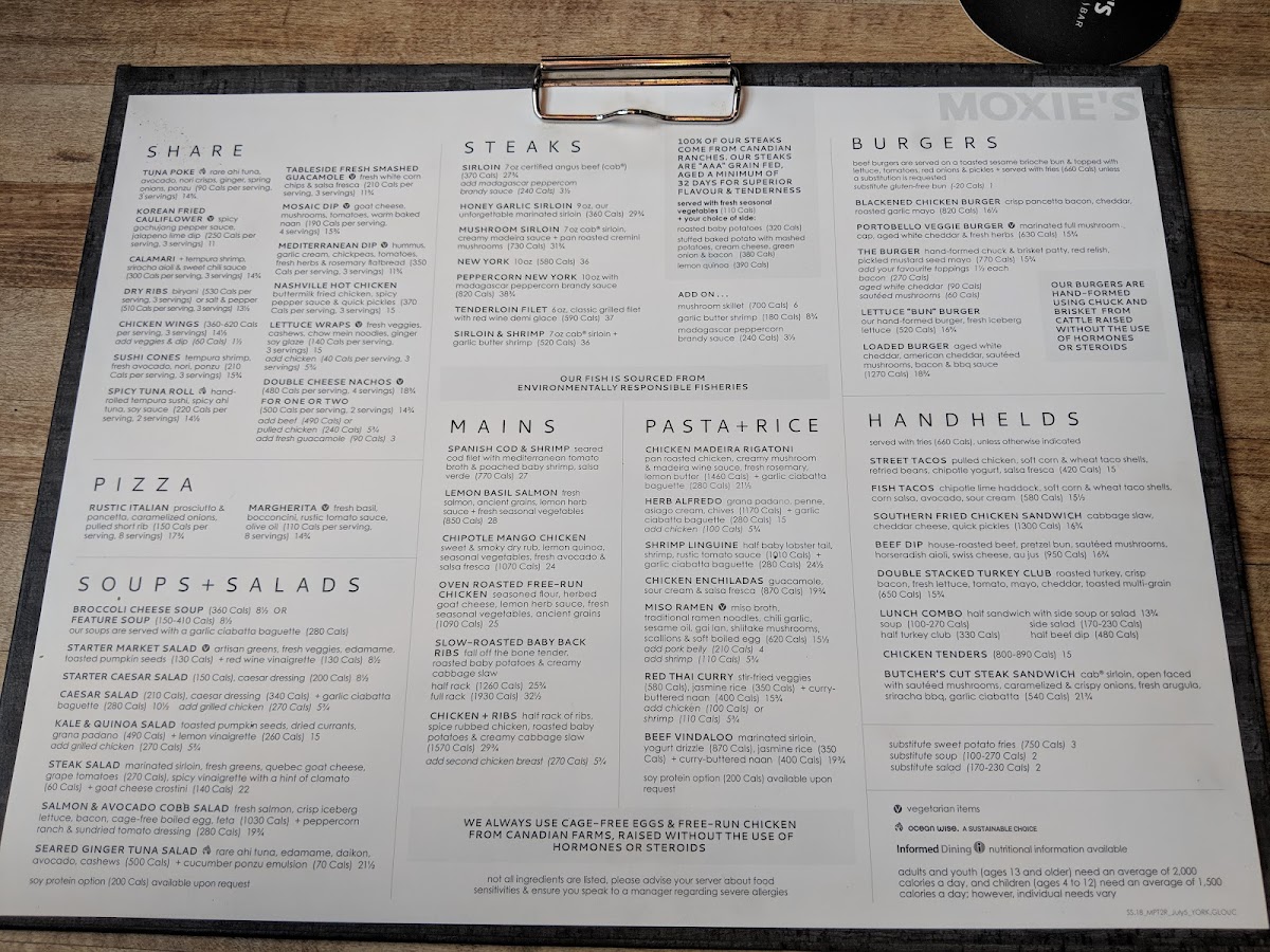 First time at Moxies and it was great. A rather different selection of meals than what we usually see.